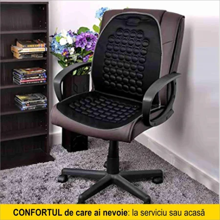 Alege Noua Husa cu Masaj cu Magneti si vei avea numai de castigat! Scaunul tau va fi mult mai confortabil si mai moale, iar timpul petrecut pe scaun nu va mai fi un timp pierdut, ci va fi un timp in care vei face si ceva util pentru corpul si sanatatea ta: tonifierea muschilor si ameliorarea durerilor de spate.